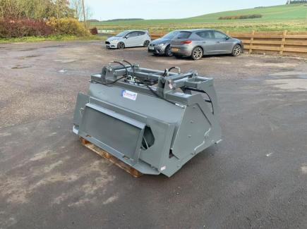 A new one for us: a Hi-Tip Bucket c/w top grab to suit a Ausa telehandler with a skid steer quick hitch. This bucket is made to handle recycled plastic bottles