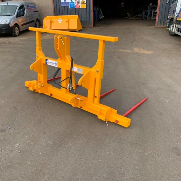 The Murray Double Bale Spike also comes in a "fold up" version, this is to allow the operator to fold the protruding tines up safely when travelling along the public highway when fitted to the front or rear of any tractor.