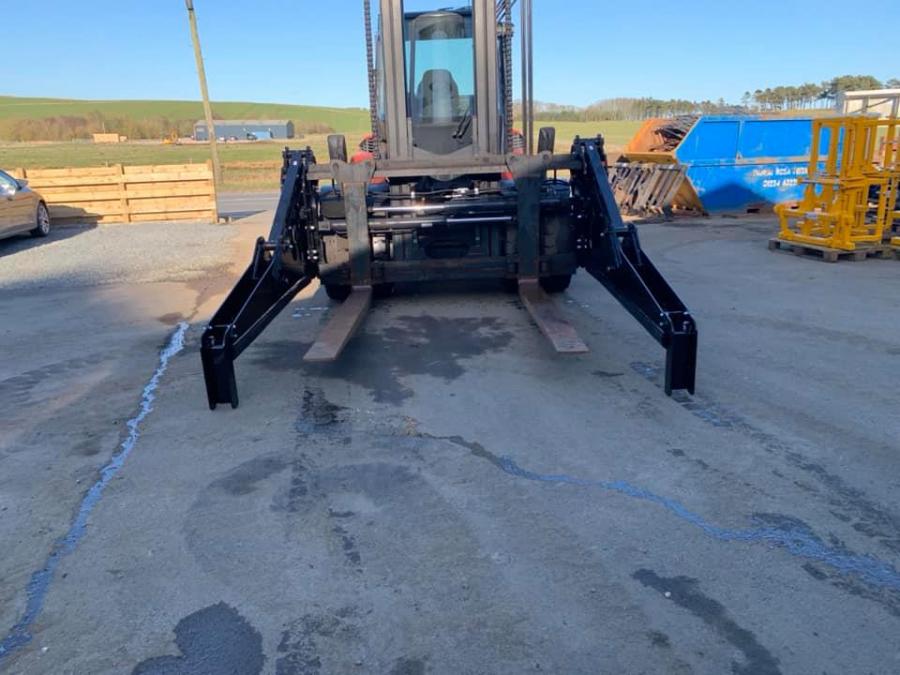 The Murray Pipe Stabilising Clamp is designed to be fitted to any large fork lift or telescopic handler to stabilise long loads or long pipes when being transported over uneven ground or when loading and unloading lorries.