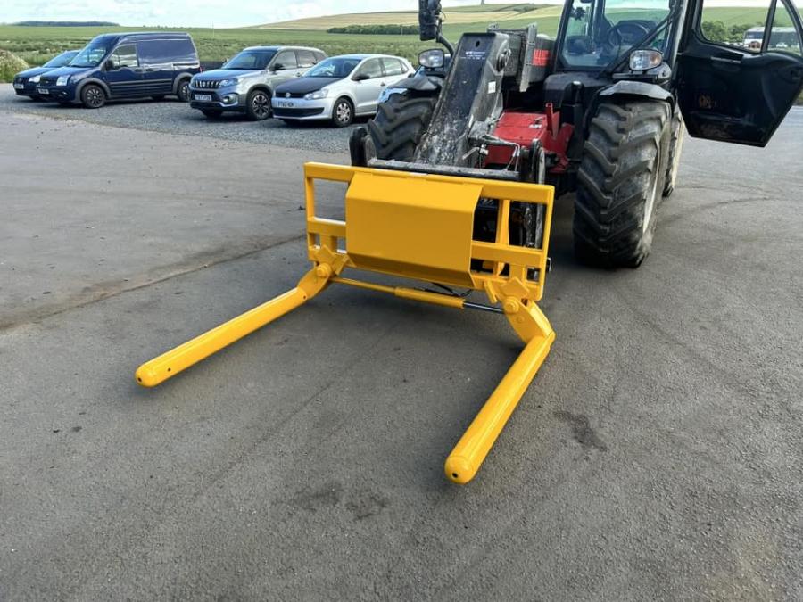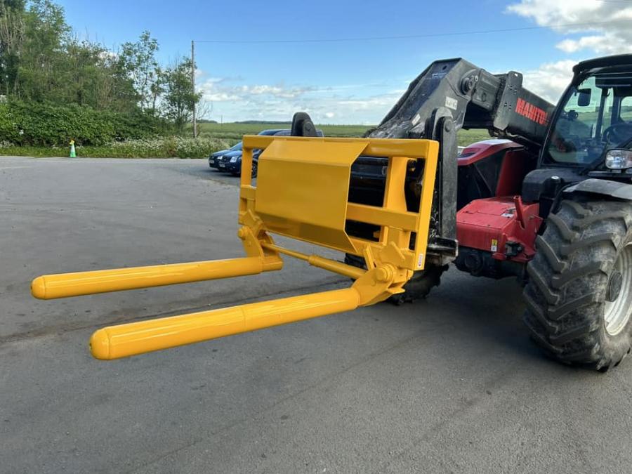 By extending the back frame, two sets of arms and rollers can be fitted to allow the operator to lift two wrapped bales at once.